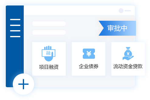投融资管理板块设置有:融资项目的新增和审核。 新增融资项目的分类有:项目融资、企业债券、流动资金贷款。分别在对应的 申请分类填写申请信息。
